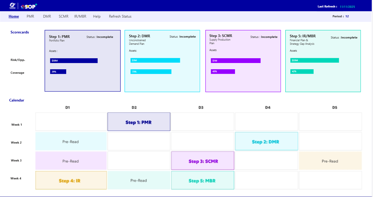 The S&OP+ Dashboard standardizes KPI identification, data collection, and visualization across planning processes. It integrates data sources into a centralized repository and provides a digital scorecard with access to key metrics, targets, and historical trends. The platform supports continuous improvement through stakeholder training and feedback-driven enhancements.